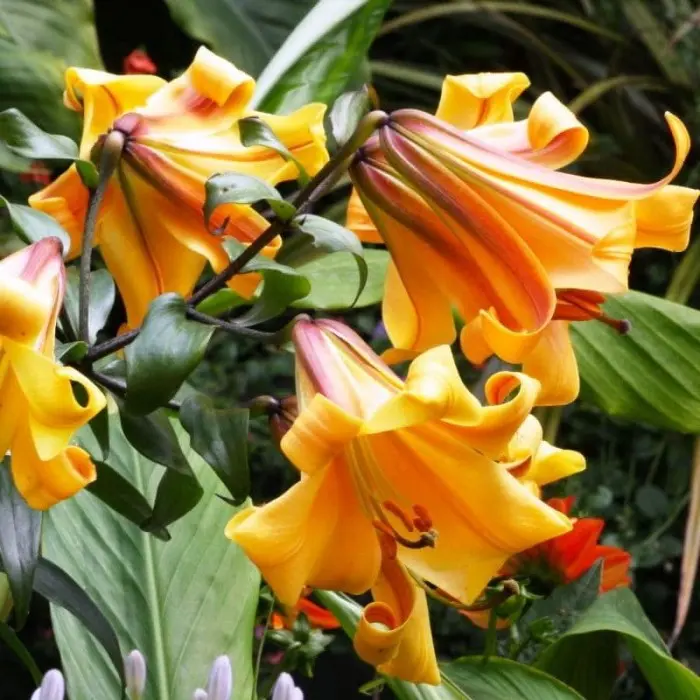 Лилия African Queen трубчатая.Разбор 12/14. Оранжево-персиковые цветки большого диаметра (до 15-ти см) неизменно притягивают взгляд. По внешней стороне лепестков наблюдаются коричневые вкрапления. Растение достигает 1,2 м ввысоту и цветет три летних месяца, вплоть до сентября. Эти гибриды отлично переносят морозы и славятся предельной устойчивостью к другим негативным факторам. Имеют устойчивые стебли. Запах довольно сильный, но приятный, обволакивающий.