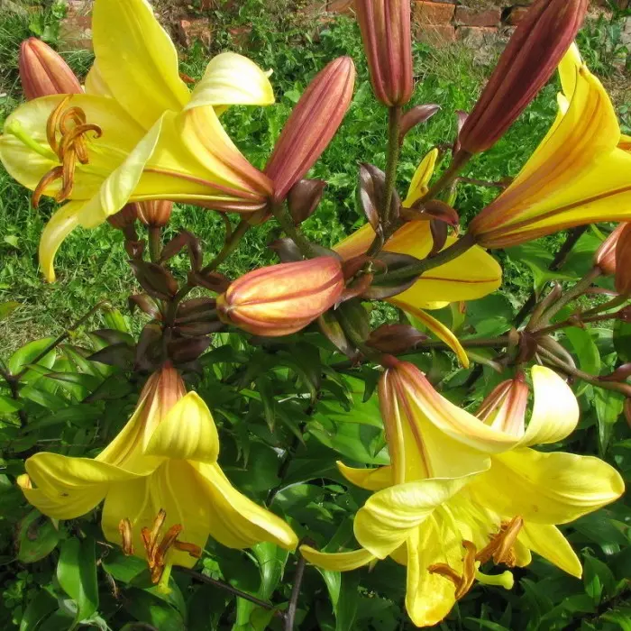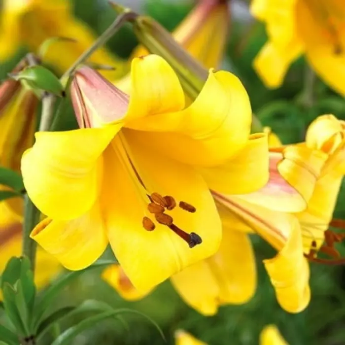 Лилия Golden Splendour трубчатая. Разбор 12/14. Азиатский трубчатый гибрид лилии с большими золотисто-лимонными соцветиями, который в высоту достигает одного метра в длину. Диаметр соцветий обычно 13 см – 15 см, хотя через несколько лет их размер может быть и больше!