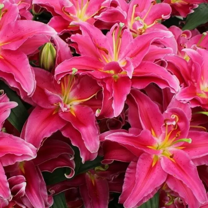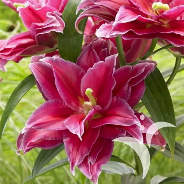 Лилия Grand Amour восточная махровая. Разбор 12/14. Великолепные малиново-розовые крупные махровые цветы с белой окантовкой произведут на Вас особое впечатление! Цветки крупные (до 20 см), махровые с волнистыми лепестками. Без пыльцы. У лилии приятный аромат. Очень продолжительное цветение в течение почти 2 месяцев. Цветки не осыпаются и хорошо подходят для срезки.