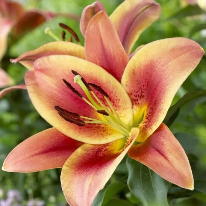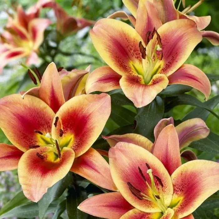 Лилия Montego Bay ОТ-гибрид. Разбор 12/14. Оранжевые цветки с контрастным жёлто-золотым центром и каймой источают невероятно сладкий аромат! Любителям ароматных лилий стоит посадить Монтего Бей поближе к парадному входу в дом, либо применить его для заднего фона крупных посадок. Цветы очень крупные (диаметр 20 см) и долгоцветущие. При этом с каждым годом они растут всё выше и выше. А уже на третий год посадки могут дорасти до 2,2 м!