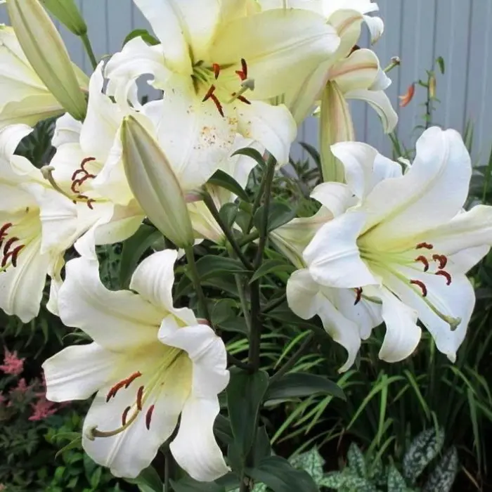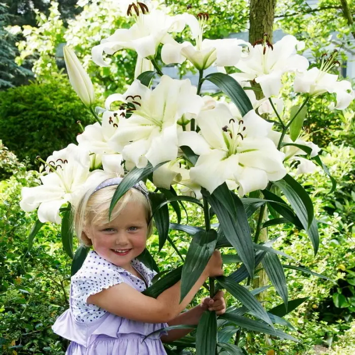Лилия Pretty Woman ОТ-гибрид. Разбор 12/14. Эта лилия непрерывно цветёт целый месяц! Лилия зацветает сразу же после азиатских лилий. Срок её цветения от 3 до 4 недель. Невероятный ОТ-гибрид, белоснежные жемчужные цветки которого достигают диаметра 20-25 см. Также впечатляет её высота от 120 до 180 см! Лепестки очень плотные, долго не опадают, закручиваются назад. Тычинки высокие, с тёмно-коричневыми пыльниками.