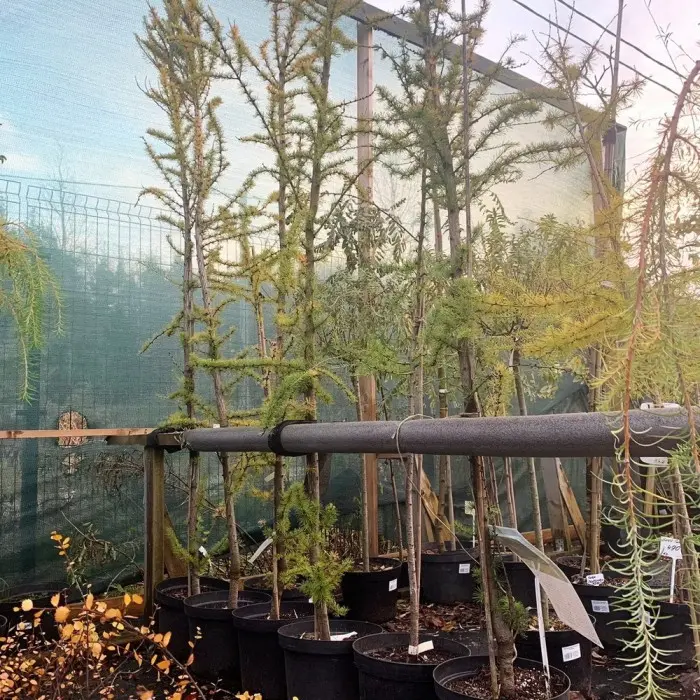 Саженцы лиственницы Jakobsen Pyramid вырастают в стройные деревца, ветви которых будут нежно светиться голубовато-зеленым оттенком хвои. На взрослых крупномерах появляются круглые шишки. Нежная хвоя располагается на удлиненных вертикальных побегах, и к осени приобретает золотистый оттенок. Высота лиственницы Якобсен Пирамид может достигать 5 м. Одинаково гармонично смотрится в одиночных и групповых посадках. Достоинства: