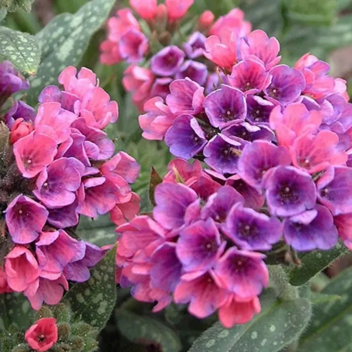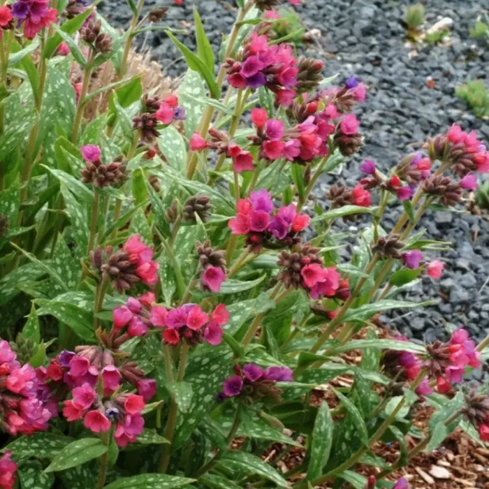 Медуница Raspberry Splash. Сорт особенно ценится за декоративные листья. Они темно-зеленые узкие, вытянутые, густо усыпанные серебристыми пятнами разного размера. Цветы окрашены в манжетово-розовый цвет. Высота взрослого растения не превышает 30 см. Рассада медуницы "Распберри Сплэш" хорошо осмотрится как в бордюрах, так и различных миксбордерах и групповых цветниках.