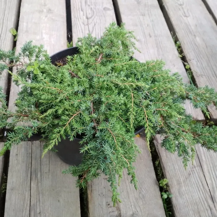 Можжевельник обыкновенный Green Carpet хвойный кустарник с густой плотной кроной. Стелющиеся побеги произрастают в горизонтальном направлении и переплетаются между собой. Растение во взрослом состоянии может достигать высоту до 0,2м, а в диаметре их крона составляет 1,5м.