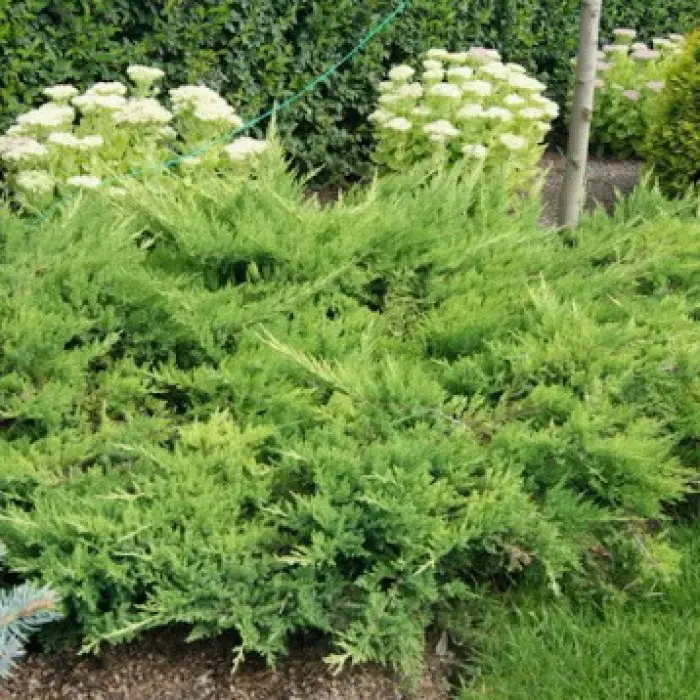 Можжевельник средний Mathot небольшой хвойный кустарник с ветвистой кроной. Высота взрослого растения достигает в высоту до 0,5, в диаметре может разрастаться до 1,5 м. На ветвях образуется игольчатая хвоя с голубовато-зеленым цветом. Кустарник быстро развивается по сравнения с другими сортами можжевельника. Можжевельник средний Матот содержит ядовитые вещества, поэтому во время обработки растения рекомендуется надеть защитную одежду и перчатки.