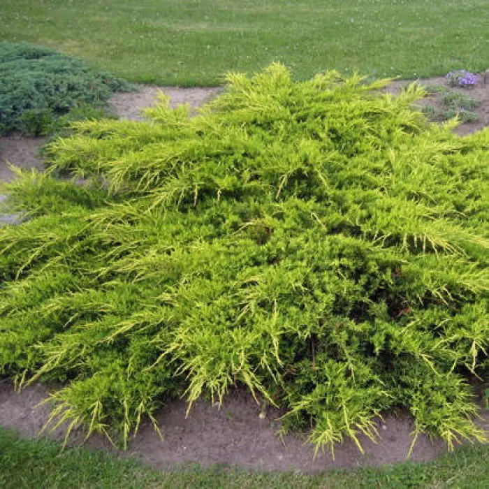 Можжевельник средний Pfitzeriana Aurea – декоративный кустарник вырастающий до 3м в высоту и имеющий раскидистую крону до 5 м в диаметре. Кустарник обладает мягкой чешуйчатой желто-зеленой хвоей с игольчатым основанием. Необычная декоративная крона с горизонтальными наклонно восходящими побегами, хорошо смотрится рядом с хвойными или вересковыми растениями. Можжевельник растет медленно, нетребователен к почве и устойчив к низким температурам. Любит освещенные участки с хорошо дренированной почвой. Можжевельник средний Пфитцериана Ауреа используется для озеленения каменистых склонов, альпинариев, в качестве невысокой живой изгороди. Можно выращивать в контейнерах. Кустарник неприхотлив в уходе и не требует обрезки.