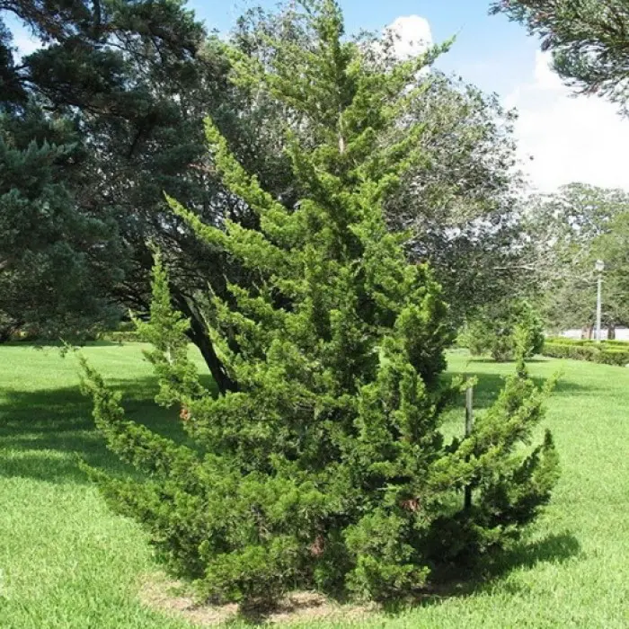 Можжевельник виргинский Canaertii - это вечнозеленый кустарник с густой, сужающейся кверху кроной. Растение вырастает в высоту до 10 м и ширину 2-3 м. Можжевельник имеет короткие побеги со свисающими кончиками. Ветви кустарника произрастают строго в вертикальном положении.