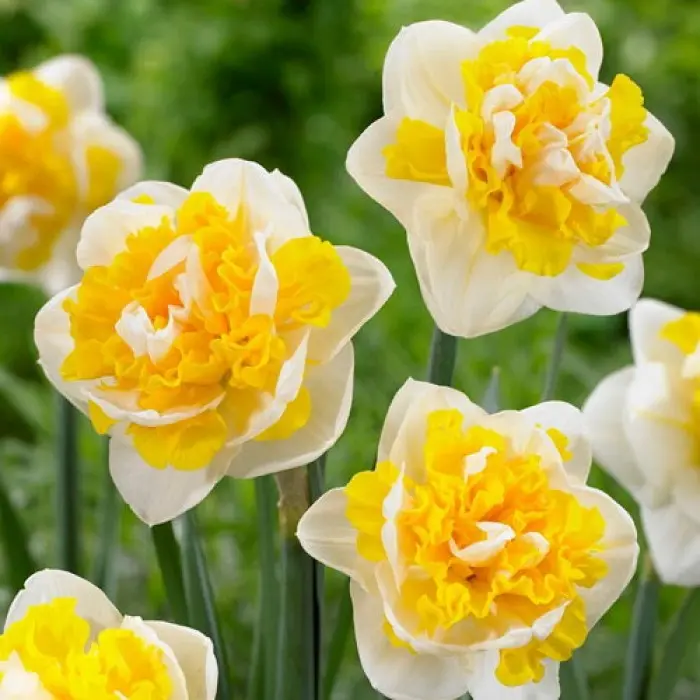 Нарцисс махровый Unique. Характеризуется цветоносами, которые вырастают до 40 см. Диаметр цветка в среднем 11 см. Лучше всего выращивать на местностях с хорошей освещенностью, но могут расти и в полутени. Не перемещая с одного места на другое, цветы можно выращивать на протяжении 3-5 лет. Нарциссы к грунтам не сильно требовательны, но лучше всего следить, чтобы почвы были хорошо рыхленными, дренированными, уровень кислотности не превышал нормы. Они совсем не переносят застоя воды, потому что она может стать причиной загнивания луковиц.