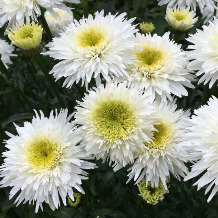 Нивяник великолепный Fiona Goghill. Высота растения 75 см, цветок махровый, кремово-белые узкие лепестки, золотистый центр. Цветет июль- август. Нивяник используют в групповых посадках на фоне декоративных кустарников, в рабатках, применяется при создании одновидовых групп на газоне, опушках, возле декоративных кустарников. Зона зимостойкости: 4 (-35 ° С).