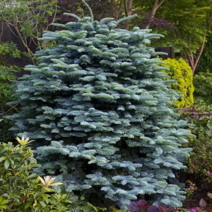 Пихта высокорослая Glauca - декоративное дерево средней величины, 15-18 (20) м, и 4-6 м шириной. Форма кроны может быть как симметричная, так и асимметричная, коническая, иногда с несколькими побегами. Ветви горизонтальные, расположены не строго слоями, долго сохраняются в нижней части ствола. Обычно медленно растущее дерево, 25-40 см в год, иногда до 80 см. Старые растения (сеянцы пихты) с очень прямым цилиндрическим стволом и массивной, пирамидальной кроной, в старости немного сплющенной. В Национальном заповеднике Гиффорд Пинчов, самое крупная пихта Глаука высотой 85 м и обхватом ствола 8,6 м