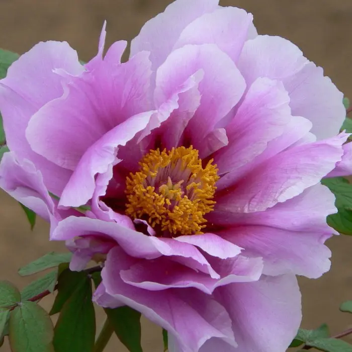 Пион древовидный purple. Прямостоячий листопадный кустарник 1,5-2 м. Побеги бледно-коричневые, толстые, не увядают осенью, легко формируют шаровидную форму. Лист дважды перистый, ажурный. Окраска цветка фиолетовая, 12-20 см, форма махровая, полумахровая, простая. Цветение с возрастом обильное, начинается раньше травянистого пиона, продолжается 15-20 дней. Зона зимостойкости 4.