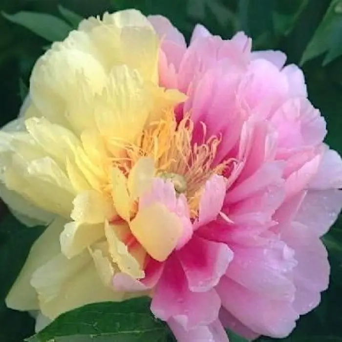 Полумахровый. Цветок крупный, чашевидный, жёлтый с розовыми полосами на некоторых лепестках, время от времени один или два цветка могут быть наполовину лавандовые, наполовину жёлтые. Стебли прочные. Цветки расположены значительно выше листвы. Куст высотой 80-100 см и шириной 75 см. Листья тёмно-зелёные. Срок цветения средний. Очень похож по форме на сорт «Бардзелла», но менее махровый и более светлый.