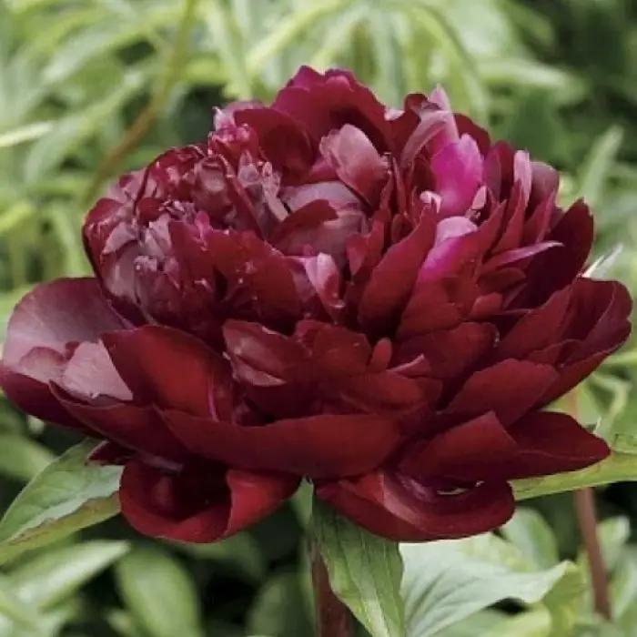 Уникальность пиона сорта Армани заключается в его глубоком гранатовом цвете, который с каждым днём становится темнее. Это один из самых тёмно-бордовых пионов. Густомахровый бутон пиона Armani в период роспуска может достигать головокружительного размера - 20 см в диаметре. Лепестки словно атласные, у основания крупные, а выше к центру становятся мельче.