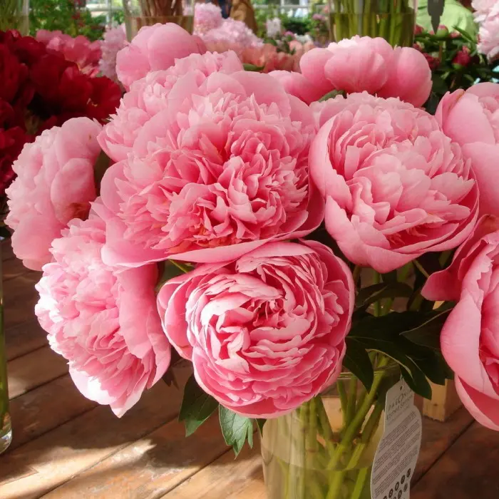 Пион молочноцветковый Etched Salmon. Цветок практически идеальной формы, с плотно выложенными внешними лепестками и аккуратно уложенными внутренними. Оттенок колеблется от лососево-розового до кораллового в зависимости от интенсивности освещенности. Достоинства этого сорта позволили завоевать ему множество наград. Благодаря прочным стеблям и приятному аромату часто выращивается на срезку.