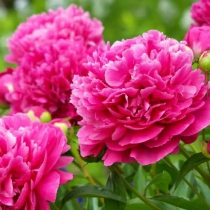 Растение образует вертикальный куст с насыщенно-зелеными листьями, который остается привлекательным весь сезон. Этот сорт имеет махровые цветки шаровидной формы. Их окраска насыщенная малиново-красная с белыми штрихами на краях. Внутренние лепестки узкие, плотно прилегают к внешним, образуя шар. Тычинки отсутствуют или малозаметны. Размер цветка около 15 см в диаметре. Цветки ароматны. Период цветения больше 3 недель. Цветоносы толстые, очень прочные.