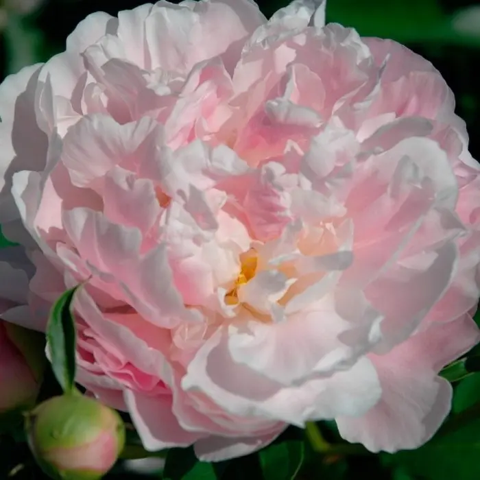 Пион молочноцветковый Catharina Fontijn. Цветок махровый, крупный. Окраска изменчивая, от нежной лососёво-розовой до тёмно-розовой, затем выцветает до белой. Тычинки жёлтые, едва заметные. Аромат сильный. Куст высотой 100 см. Стебли очень крепкие, хорошо ветвящиеся, с большим количеством боковых бутонов. Цветение обильное, в средне-поздние сроки. Очень надёжный сорт, хорошая срезка.