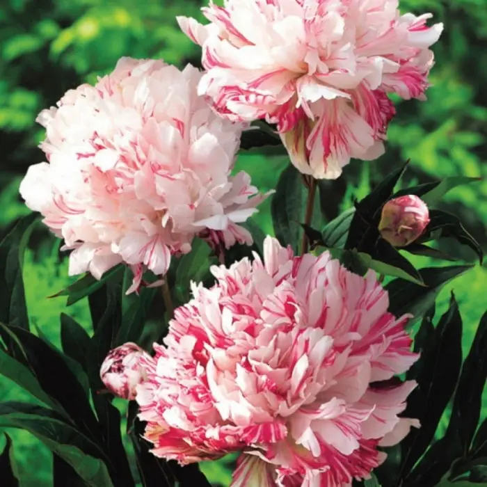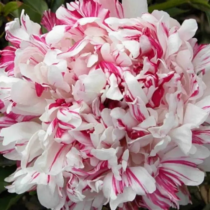 Пион молочноцветковый Kirinmaru. Взрослое растение формирует среднерослый куст высотой 90-100 сантиметров с многочисленными побегами. В конце весны распускается густо набитыми махровыми цветами. Особую ценность представляют расцветка — молочно-белая с большими малиновыми мазками. Цветок раскрывается медленно, но долго сохраняет свою привлекательность, подходит для среза. Его диаметр достигает 15 сантиметров. Сорт Киринмару станет изюминкой вашего сада, цветника и любой открытой территории.