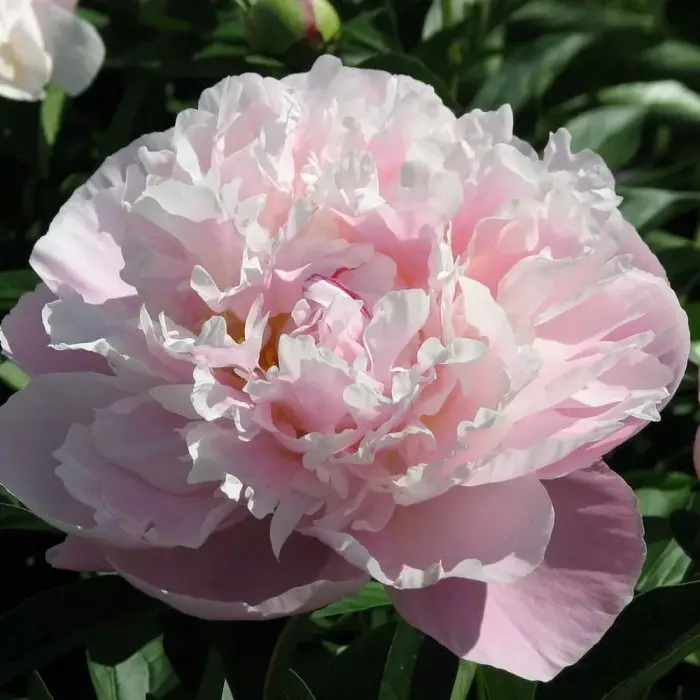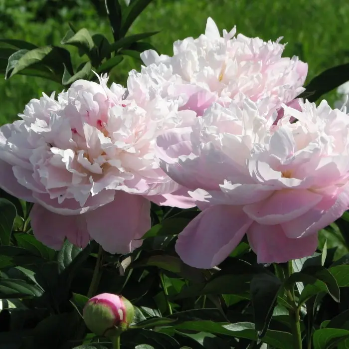 Пион молочноцветковый Lady Alexandra Duff. Высота растения: до 90 см. Размер цветка: до 14 см. Размер цветка: до 14 см. куст с махровыми или полумахровыми цветками с открытым центром и диаметром до 18 см. Окрас цветков пиона Леди Александр Дафф в самом начале цветения светло-розовый, но позднее становится белым. Этот сорт пионов обладает легким ароматом с ярко выраженными сладкими нотками.