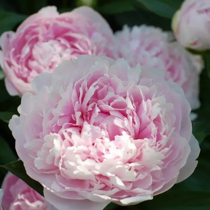 Пион молочноцветковый Morning Kiss. Высота растения: до 70 см. Размер цветка: до 20 см. отличается крупными соцветиями. Нежные перламутрово-розовые лепестки искрятся на солнце словно драгоценные камни. На кончиках лепестки имеют более светлый оттенок. Куст высокий и округлый. Цветет этот пион в мае-июне.