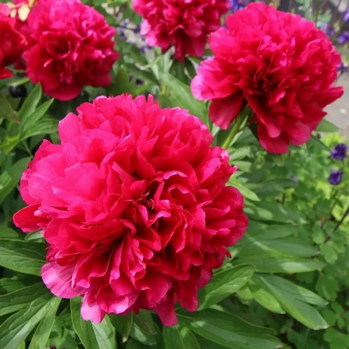 Пион молочноцветковый Red Supreme. Многолетний, позднецветущий сорт. Куст прямостоячий, компактный, высота до 100 см, стебель прочный. Цветок изящный , махровой, плотной формы, 15 см, лепестки волнистые, гофрированные, темно-розовой окраски, с сиреневым оттенком, отличная срезка. Лист крупный, рассеченный, зеленый, глянцевый.