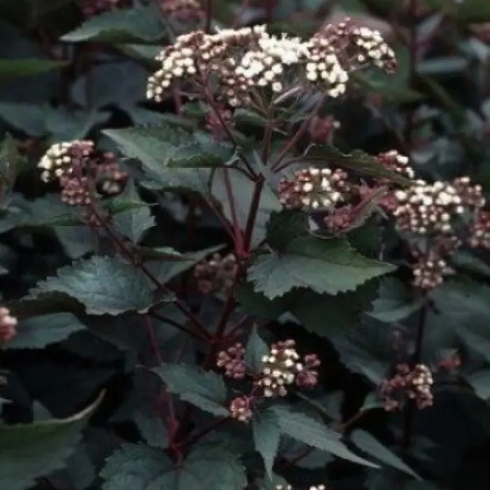 Цветки белые, в мелких корзинках, собранных с щитковидные соцветия диаметром до 15 см. Период цветения: в конце августа - начале сентября.