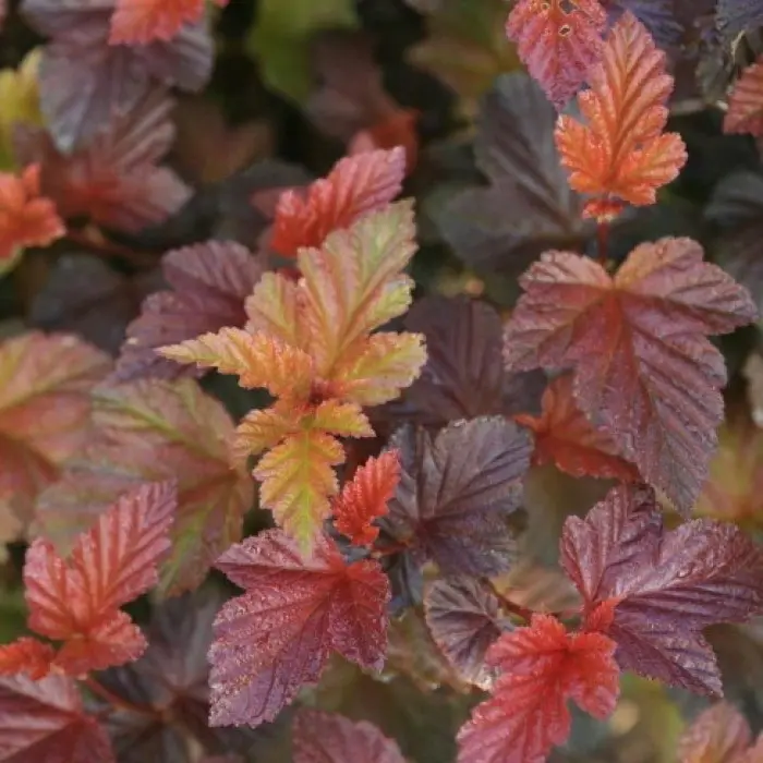 Пузыреплодник калинолистный Schuch. Листопадный кустарник, высотой 1,5-2 м. Новый чешский сорт с насыщенной красной окраской молодых листьев и побегов.