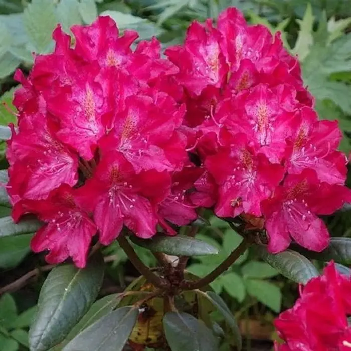 Рододендрон Гибридный Kazimierz Wielki. Сорт представляет собой плотный, энергично растущий кустарник, в период цветения на нём появляются очень крупные, сильно раскрытые цветки. Окраска лепестков от насыщенно-розового до практически белого в середине, ближе к центру большой красно-коричневый крап. Листья тёмно-зелёные, блестящие, продолговатой формы. Молодые побеги с опушением. Высота взрослого растения до 150 см. Период цветения приходится на май- июнь.