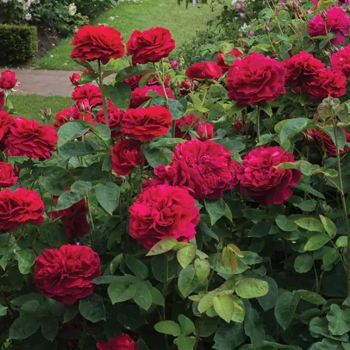 Роза английская L.D.Braithwaite. Роза имеет цветки самого яркого красного цвета среди английских роз, и этот цвет долго не блекнет. Цветки привлекательные, хотя и не имеют идеальной формы старинной розы, широко раскрытые. Роза цветет в течение всего лета - на кусте редко не бывает цветов. Запах достаточно сильный. Куст низкий, широкий и открытый, что делает сорт желанным для сада. Высота куста 100 см, ширина 100 см, диаметр цветка 10 см.
