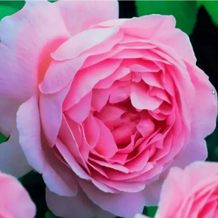 Чашевидные в начале роспуска цветки раскрываются в густомахровые розетки розового цвета с красно-фиолетовыми оттенками и обладают сильным фруктовым ароматом. Продолжительность цветения цветка на стебле до 10 дней.