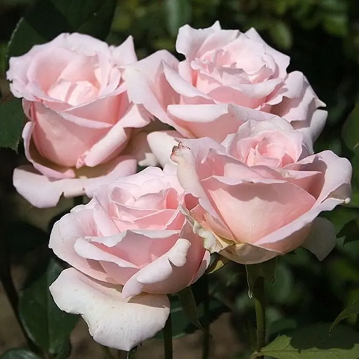 Роза чайно-гибридная Marchenkonigin. Цветки очень элегантные, когда они медленно распускаются из крупных бледно-розовых бутонов. Появляются по одному на концах очень длинных, сильных побегов, что делает их идеальными для цветочных аранжировок. Это сильнорослая и устойчивая к заболеваниям роза, с крупными темными листьями и почти без шипов. Диаметр цветков: 12-13см. Высота куста: 150-175 см. Ширина куста: 125 см. Аромат: слабый. Период цветения: повторноцветущая. Устойчивость к заболеваниям: черной пятнистости - высокая, мучнистой росе - средняя.