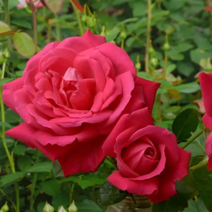 Роза чайно-гибридная Maria Callas. Крупные цветки насыщенно-розового цвета из 50-60 лепестков, с сильным ароматом, классической формы чайно-гибридной розы с высоким центром, на побегах в основном одиночные. Куст вертикальный, с прочными побегами и ярко-зеленой, матовой листвой. Высотой 90 см, шириной 60см. Сорт создан в честь самой известной оперной певицы прошлого столетия.