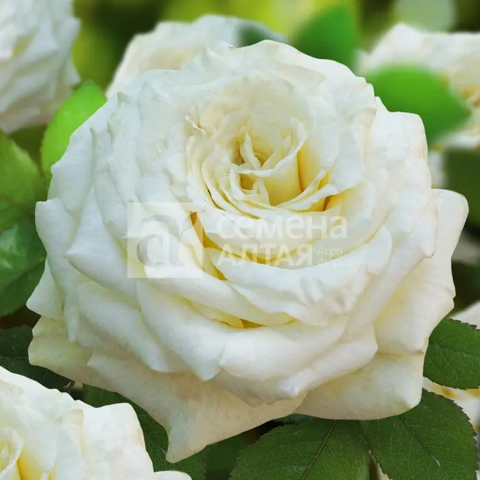 Дополнительно: Эталон белой розы! Густомахровые бутоны с высоким бокалом в момент раскрытия могут иметь легкий лимонный оттенок. При полном раскрытии становятся сияющими белыми, а бутон приобретает звездообразную форму. Бутоны очень плотные, крайне долго стоят в срезке и совершенно не повреждаются дождем и ветром. Листва крупная, глянцевая, устойчива к болезням. Цветение волнообразное.