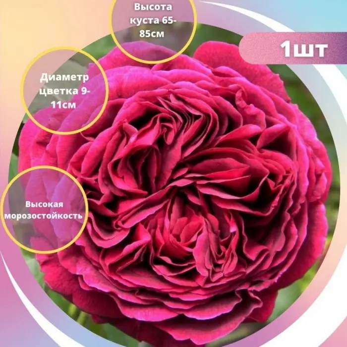 Дополнительно: Компактный куст! Бутоны пурпурно-розовые, цикламеновые, густомахровые чашеобразной формы. Классический розовый аромат дополняется сладкими нотами ягод. Отцветающие бутоны становятся сиренево-розовыми. Для сохранения декоративности листвы в течении всего сезона рекомендована профилактическая обработка от болезней.
