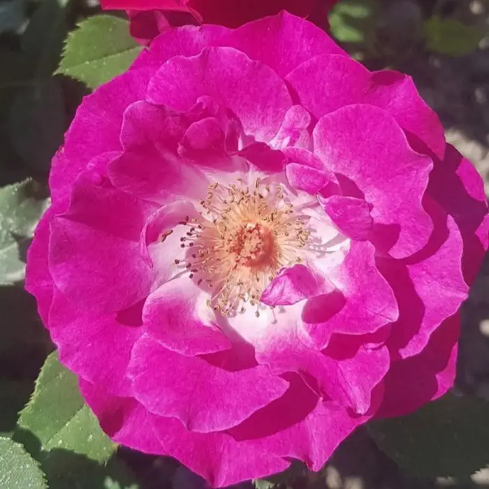 Бутон окрашен в фиолетовый цвет с розоватым оттенком, сам цветок – от фиолетового до голубого с выразительными белыми штрихами. На одном стебле может быть от 3 до 7 цветков. Листья зеленые, средние по размеру, на стебле имеются шипы. Выращивается в месте, защищенном от холодных ветров. Устойчивый к болезням сорт, но при этом он боится дождей и ему необходимо укрытие. Спокоен в отношении жары и мороза.
