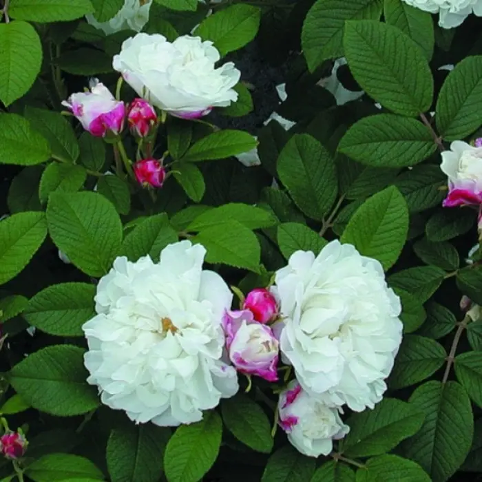 Роза канадска Louise Bugnet - кустарник с зеленой листвой без шипов с легким ароматом.