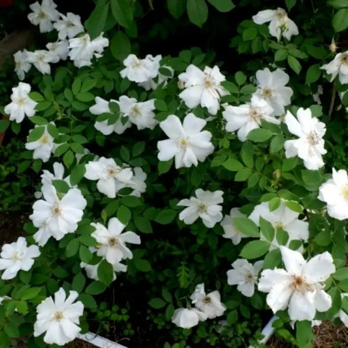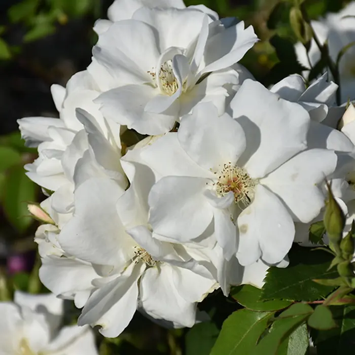 Роза канадская Morden Snowbeauty. Очень морозоустойчивая (до -45? С), устойчивая к болезням белая роза. Белоснежные полумахровые цветки розы диаметром 7-8 см, с легким ароматом очаровательны в любую погоду. Куст 50-100 см высотой с ветвистыми побегами буквально усыпан небольшими соцветиями. Из основных преимуществ розы стоит отметить морозоустойчивость, абсолютную устойчивость к заболеваниям, жаре и дождю.Этот сорт идеально подходит как для выращивания в массиве или групповых посадках, так и в качестве солитера.