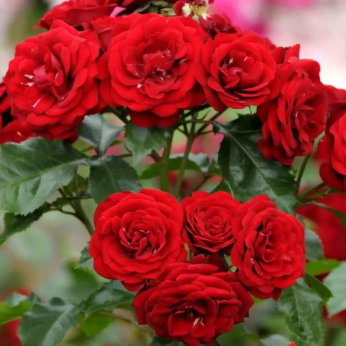 Роза канадская Пандора. Высота куста: 40-55 см. Диаметр куста: 35-50 см. Диаметр цветка: 6-7 см. Устойчивость к заболеваниям: 2/3; Полумахровые цветки собраны из десятков нежных миниатюрных лепестков глубокого темно-красного цвета. Листва матовая, мелкая и очень обильная, обладает высокой устойчивостью к болезням. Цветение декоративное, обильное и продолжительное.