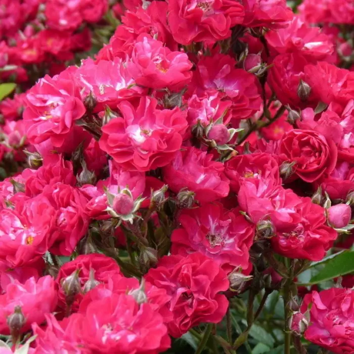 Роза миниатюрная Alberich. Куст компактный, высотой 30-40 см. Листья мелкие, темно-зеленые, глянцевые. Цветки вишневые, с легким фруктовым ароматом. Цветение обильное и продолжительное. Сорт зимостойкий, устойчив к заболеваниям.