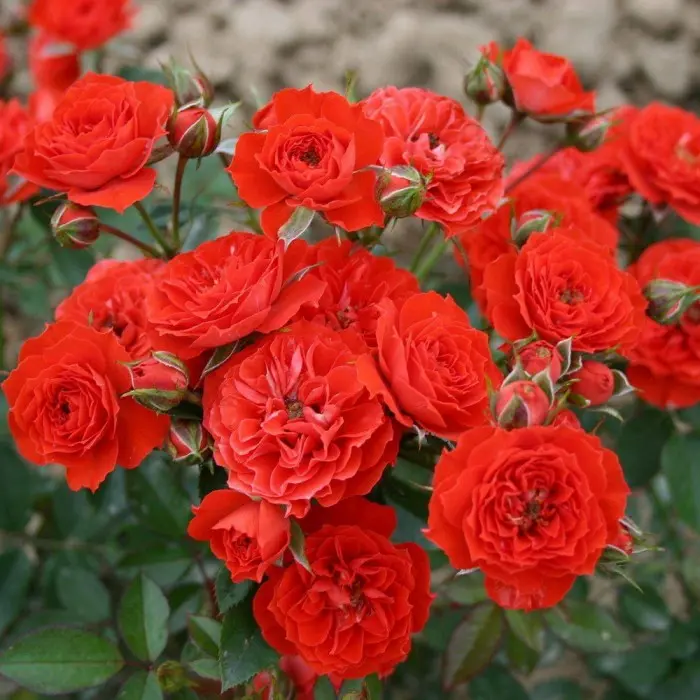 Роза миниатюрная Baby Baccara. Очень эффектная миниатюрная роза с ярко-красными густо-махровыми цветками. Компактный, обильно цветущий куст красиво сочетается с мелкой, глянцевой, темно-зеленой листвой. Высота кустика 35-40 см. Размер цветка 5-6 см, в соцветиях их по 3–5 шт.