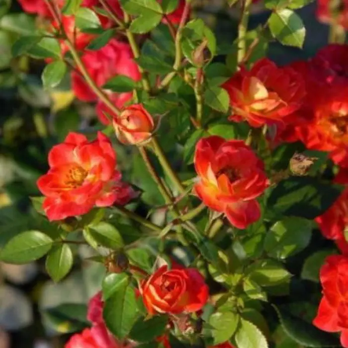 Роза миниатюрная Cha Cha Цветки маленькие, махровые, снаружи красные, внутри жёлтые, при отцветании почти красные. Аромат лёгкий. Листья маленькие. Кусты разветвлённые, компактные, высотой и шириной около 40 см. шаровидной формы. Цветение повторное, обильное, продолжительное. В обрезке не нуждаются. Используют очень широко: бордюры, цветники, альпинарии, балконы.