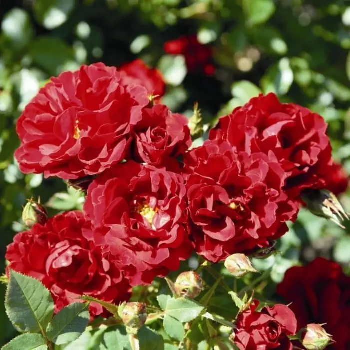 Роза миниатюрная Zwergkonig. Популярная миниатюрная роза, которая успешно может быть использована на переднем плане клумб, создании живых изгородей, а также в патио озеленении на террасах в горшках и контейнерах. Роза отличается высокой устойчивостью к дождю и ночным заморозкам. Кустик густой высотой 30-50 см с плотной мелкой темно зеленой листвой всегда усыпан небольшими темно красными цветочками с волнистыми лепестками, которые раскрыты даже в ночное время.