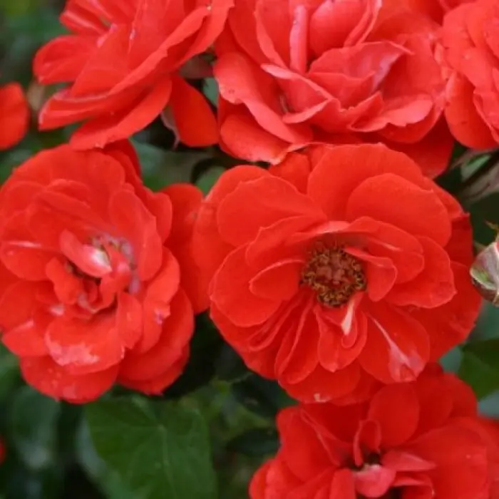 Роза миниатюрная Orange Meillandina Небольшие оранжевые или оранжево-красные цветки чашевидной формы в среднем из 40 лепестков собраны в соцветия по 1-3 шт, в полном роспуске показывают серединку. Обильное цветение. Листва кожистая, полу-глянцевая, темно-зеленая.