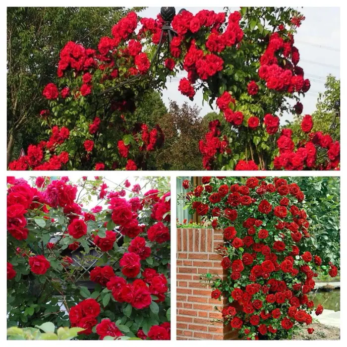 Роза плетистая Amadeus. Очень устойчивая к заболеваниям плетистая роза, привлекает внимание благодаря свои крупным, сияюще-красным махровым цветкам. Цвет практически не голубеет, цветки появляются в кистях по 5-7 шт. Куст ветвистый, прямостоячий, густооблиственный, до 2-3 м высотой, шириной 2 м. Размер цветка: 8-9 см. Кол-во цветков на стебле: 3-5.