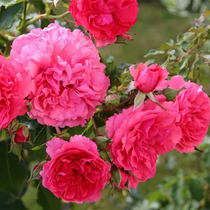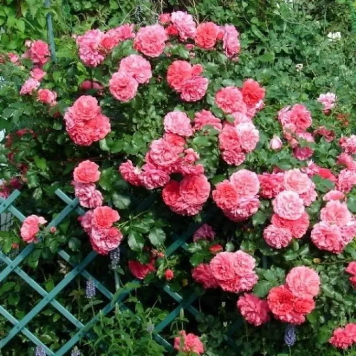 Роза плетистая Rosarium Uetersen. Один из лучших сортов в группе плетистых крупноцветковых роз. Может использоваться как кустовая роза-шраб. Кусты раскидистые с толстыми прочными плетевидными побегами. Высота 150-200 см. Цветки от густо-розовых до серебристо-розовых, плоские, с черепитчатым расположением лепестков (ностальгические), диаметром 8-11 см, густомахровые (80 лепестков), душистые, в небольших соцветиях. Шипы тонкие. Цветение обильное, продолжительное, до заморозков.