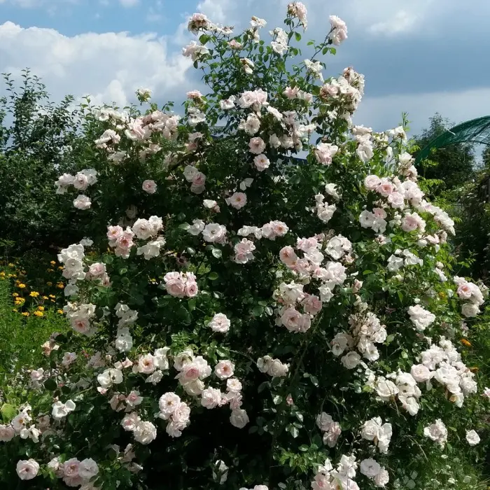 Роза плетистая Swan Lake. Плетистая роза с крупными, махровыми цветками красивой формы, раскрывающимися из бутонов классической формы. Они чисто белые с розовым оттенком в центре. Куст прямостоячий. Подвержен черной пятнистости. Куст аккуратный, легко направляется по опоре. Высота 200-300 см.