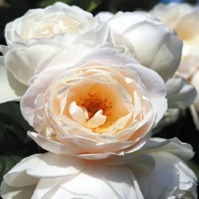 Роза плетистая Uetersener Klosterrose. Ветвистая плетистая роза. Цветки 9-11 см диаметром, кремовые с золотыми тычинками, шаровидные, похожи на цветки сорта Raubritter. Повторное цветение очень обильное. Легкий аромат розового масла. куст высотой 250-300 см. Для лучшего образования цветков рекомендуется молодые побеги направлять горизонтально. Прекрасная устойчивость к заболеваниям.