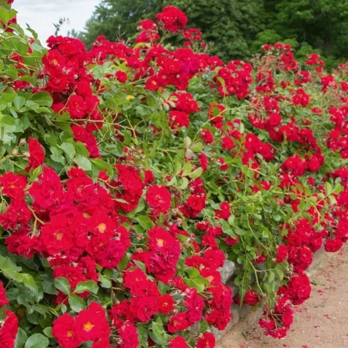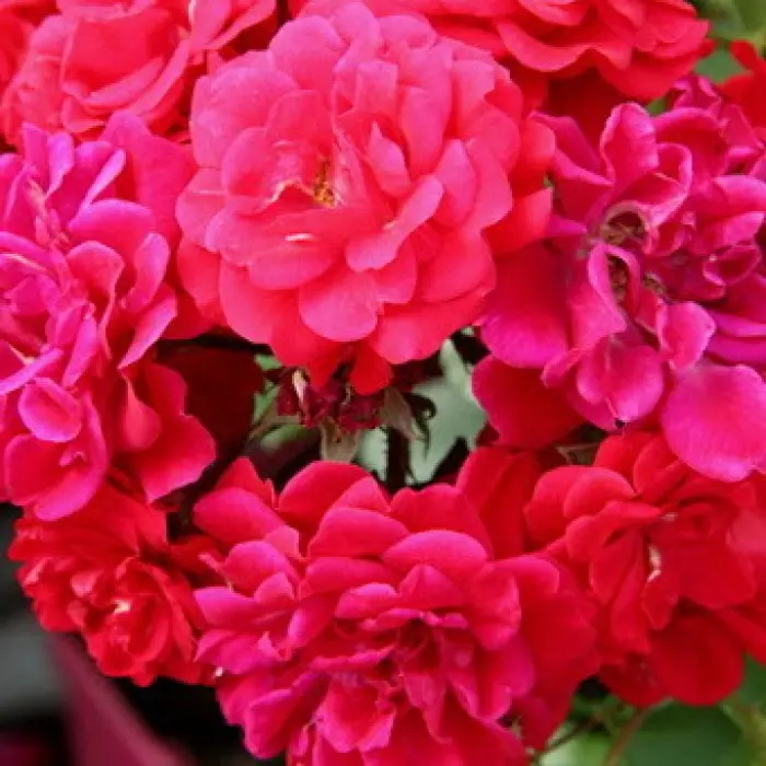 Роза почвопокровная Hello. Компактный стройный куст, обильное цветение, благодаря чему достигается эффект цветочного ковра. Цветки пурпурно-красные, густомахровые (110-120 лепестков). Сорт исключительной выносливости. Листва ярко-зеленая, блестящая.
