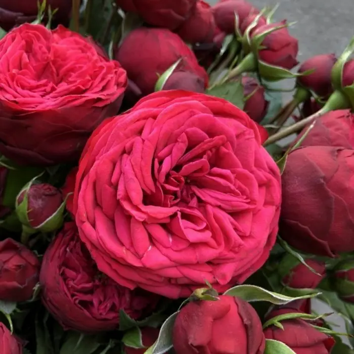 Цветение до заморозков! Густомахровые бутоны интенсивной красной окраски, часто квартированные, распускаются по 4-12 на стебле. Аромат ягодный, пряный. Растение мощное, идеально подходит для групповых посадок, срезки, может является основной живых изгородей. Не выгорает! Цветение обильное продолжается до сильных заморозков.