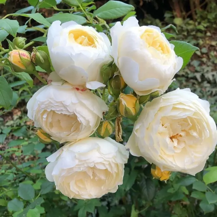 Дополнительно: Обладательница красивых чашевидных белоснежных бутонов с нежно-кремовыми серединками. До распускания бутоны, чаще всего, имеют шаровидную форму. Раскрываются очень красиво, типично для группы мускусных английских роз. Лепестки аккуратно уложены концентрическими кругами, в центре более свободно. Аромат сильный, но деликатный, пудровый, преобладает запах мирры с нотами таволги, ванили и гелиотропа. Куст элегантной формы, густоветвистый, с дуговидно поникающими побегами, обильно облиственный. Сильный и достаточно устойчивый к болезням сорт.