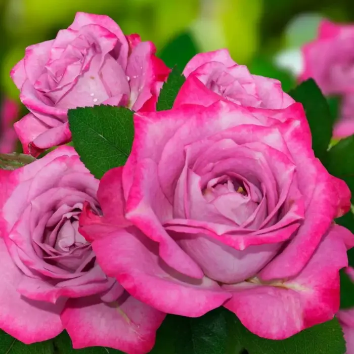 Роза спрей Мальдива. Высота куста: 35-55 см.; Диаметр куста: 35-45 см.; Диаметр цветка: 4-6 см.; Махровые бутоны собраны из нежных лиловых лепестков с пурпурным краем. При полном распускании цветки могут показывать яркую серединку. Цветки долго не теряют декоративности. Листва мелкая, матовая, обладает хорошей устойчивостью к болезням. Повторное цветение